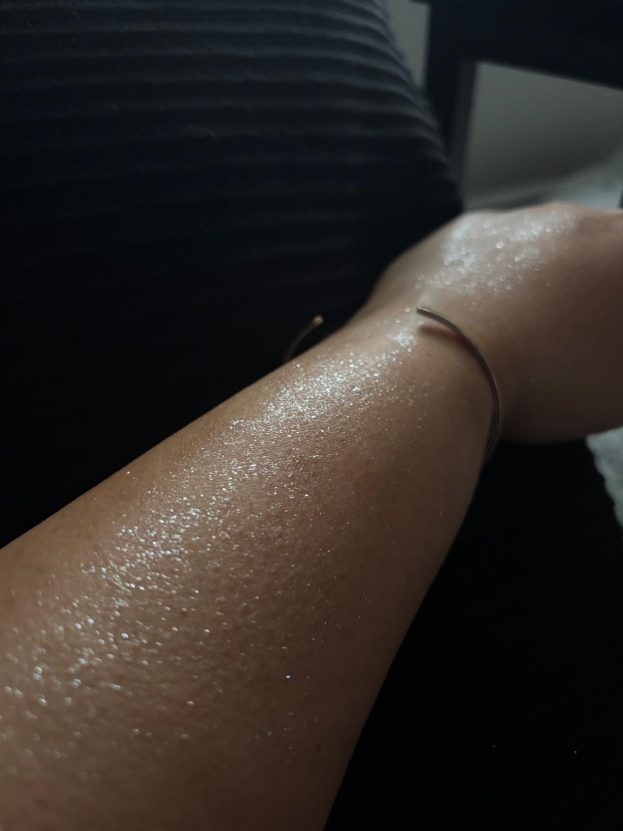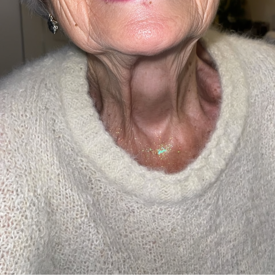 Even if I’m just running errands I sometimes put a tiny bit on. It gives me a natural glow without looking like glitter. Love adding it to my clothes too. I highly recommend it. 😍