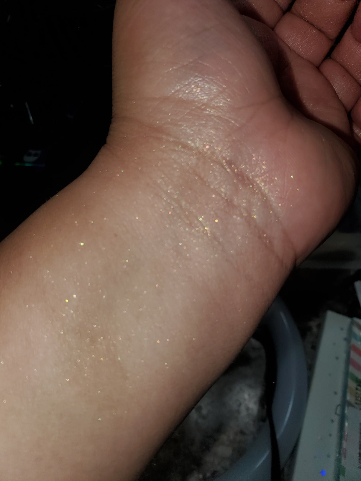 I used it before going dancing and it stayed on the whole night. The shimmer looked insane under the lights. I got so many compliments.
