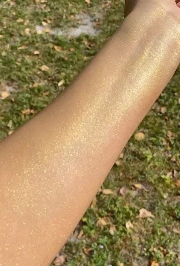 Very beautiful shimmer. I love how versatile it is for putting it in your hair or on your skin. Washes off really easily with soap and water too which is perfect!